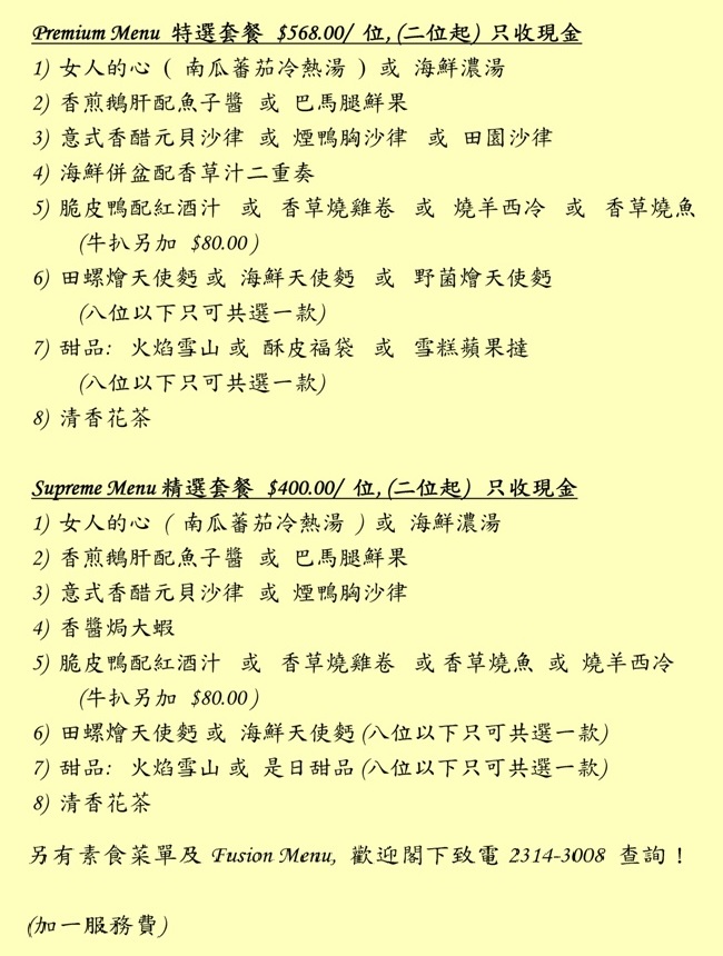 Copyright ©2002-2018 Bon Appetit Private Kitchen Restaurant ¼y¨å¨p©Ðµæ. All rights reserved. Website : www.bonappetit.com.hk