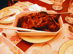 龍 宮 團 圓 – 其 實 是 咸 魚 煎 肉 餅 , 很 香 口 , 就 這 麼 吃 的 話 便 覺 得 稍 為 咸 和 油 膩 了 一 點 , 配 飯 吃 應 該 可 以 叫 人 幹 掉 一 大 碗 . 在 座 的 嚐 辣 者 都 很 欣 賞 鋪 在 面 頭 的 辣 椒 , 原 來 是 大 廚 特 地 挑 選 , 從 外 地 運 來 的 貨 色 . 在 座 亦 有 人 提 議 可 做 成 鴛 鴦 肉 餅 , 即 在 其 中 一 半 混 入 辣 椒 來 煎 , 讓 嚐 辣 者 過 足 癮 , 我 也 覺 得 是 個 很 好 的 建 議 .